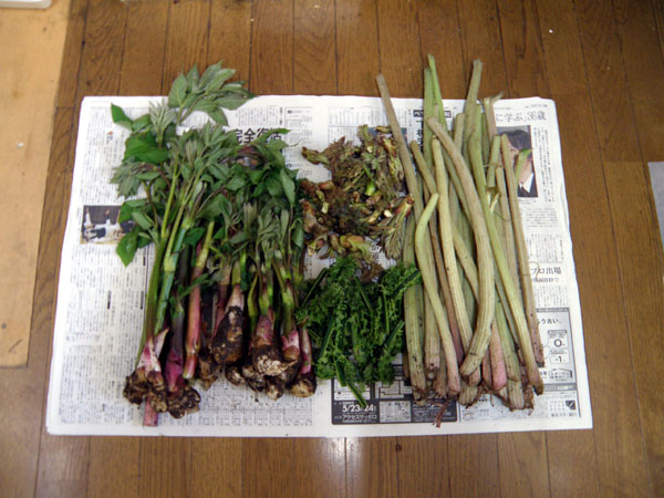 一昨日、定休日を利用して厚田まで春の山菜採ってきました。山うど、こごみ、ふき、タラの芽等。酢の物、天ぷら、和え物等晩酌セットにプラスしてお出しします。